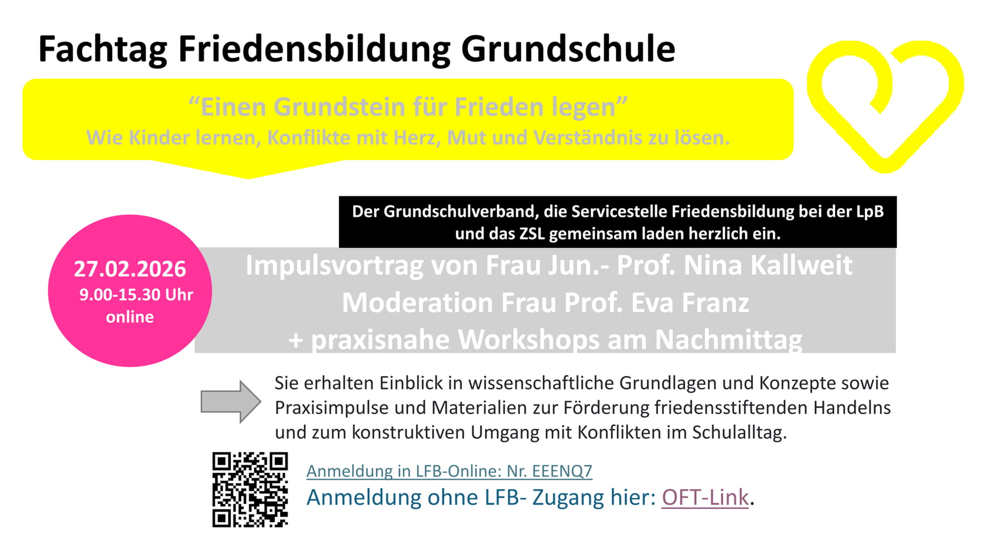 Der Grundschulverband, die Servicestelle Friedensbildung bei der Landeszentrale für politische Bildung und das ZSL laden Sie gemeinsam herzlich ein:
